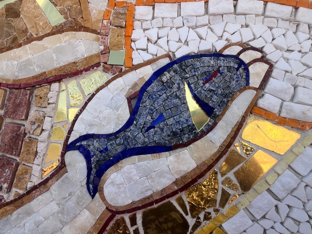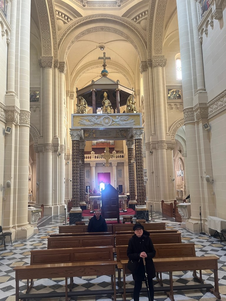 The Ta’Pinu Basilica in Gharb, Gozo. It’s a “basilica” instead of a “church” or “cathedral,” I learned, because the Pope said so. He said so because it is home to a whole gaggle of miracles. The mosaics are amazing. For those of you who don’t know, the dominant motif of our home in Vermont is fish. We are sure the mosaic fish images will find happy homes somewhere on our walls.