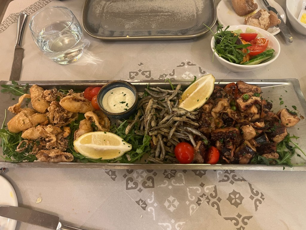What a meal at Il Kartell in Marsalforn! Calamari, octopus, and a small, crispy smelt-like thing that was scrumptious.