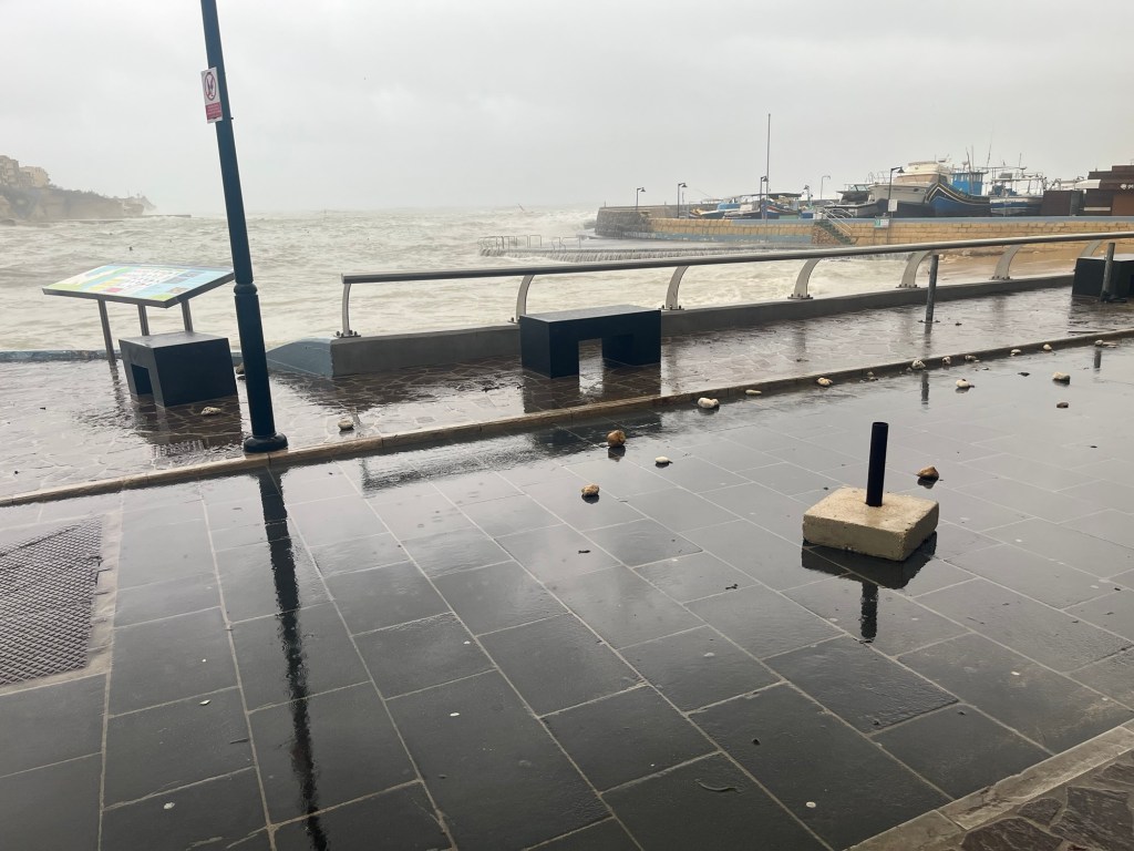 Before leaving Gozo, the desk clerk at our hotel (Tamzin, who is an utter delight!) showed us a video of waves breaking a door down in Marsaskala. Here is that video. Watch it!!!! https://www.facebook.com/share/r/1HBEbdzenf/