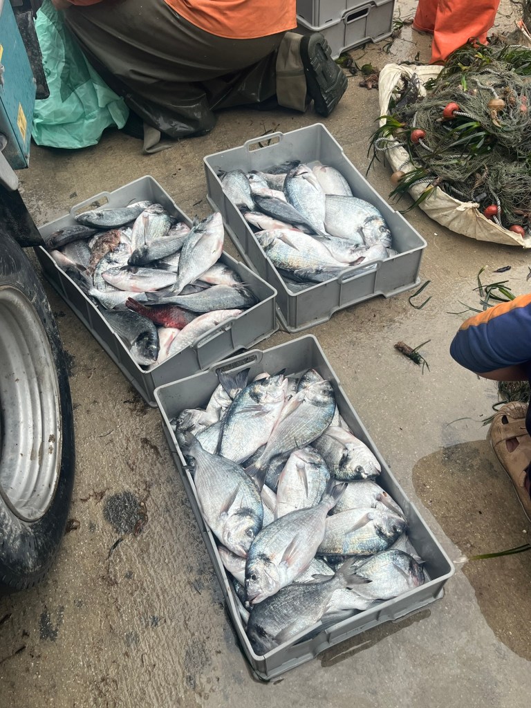The pros were raking in the bounty too: a couple of luzzus were docked. Their nets contained literally tons of fish.