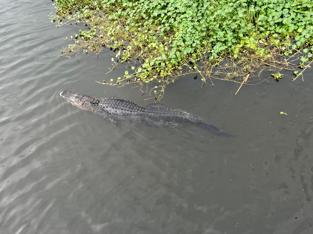 Friday, we piddled. Saturday, Mike flew home and the rest of us drove to Gainesville with a long stop at Silver Springs. We’d hoped to see manatees (especially one of their two new babies), but nature didn’t behave. In fact, we couldn’t even take one of their famous glass-bottom boat tours because of a lightning storm. (At least I saved a little dough.)