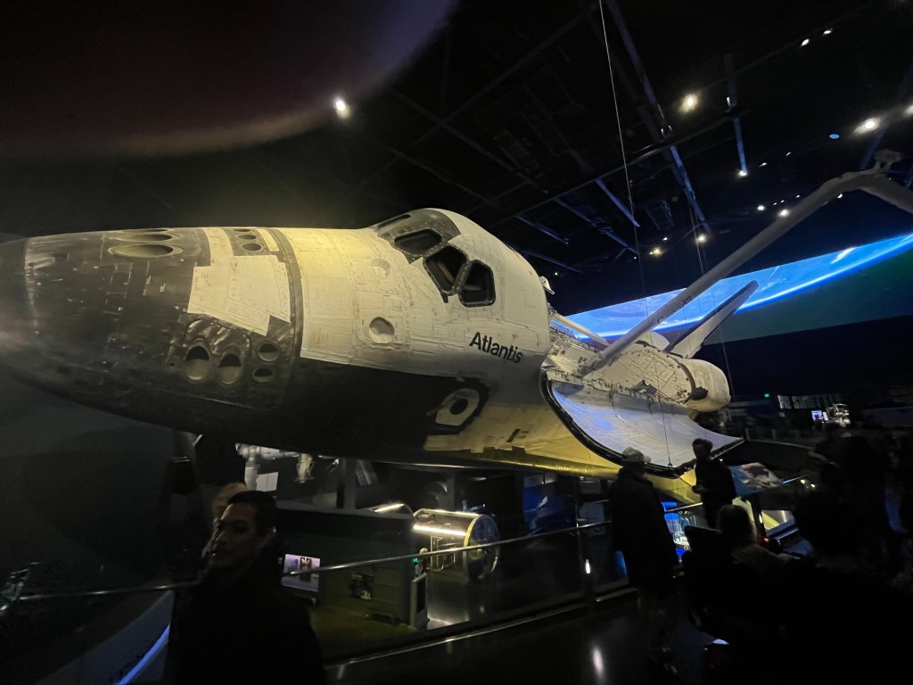 From the launch, we went to the new Space Shuttle Atlantis exhibit. I’ve been to the Canaveral Visitor Center twice before. There is no limit to the number of times I could go and not tire of it. The Space Shuttle Simulator is like one of the coolest things ever. The first time I went, decades ago, I fell in love with the simulator. The second time, 7 or 8 years ago, the simulator was everything that I remembered it to be … plus NASA had moved the Shuttle Atlantis … the first shuttle ever to fly … to Canaveral. We saw it standing next to the building that would become the Atlantis Exhibit Hall, but we couldn’t get close to it.