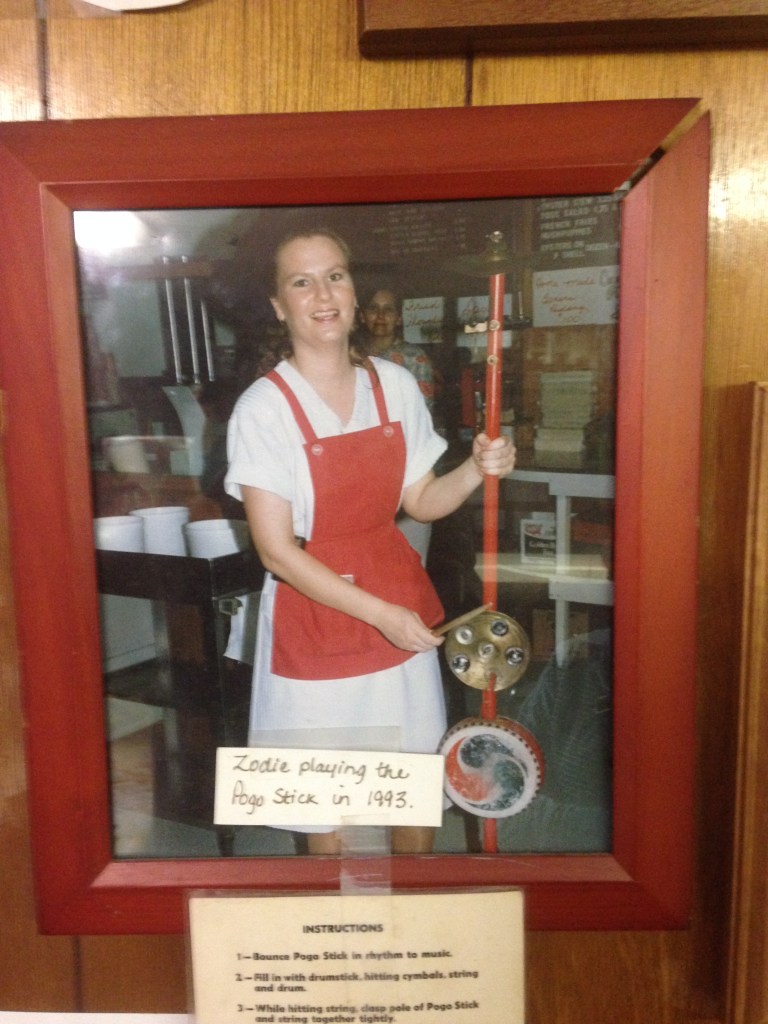 Deal’s Oyster House: Zodie playing her pogo stick in 1993 and again 2015. (Check out a Youtube of it. They are hilarious!)