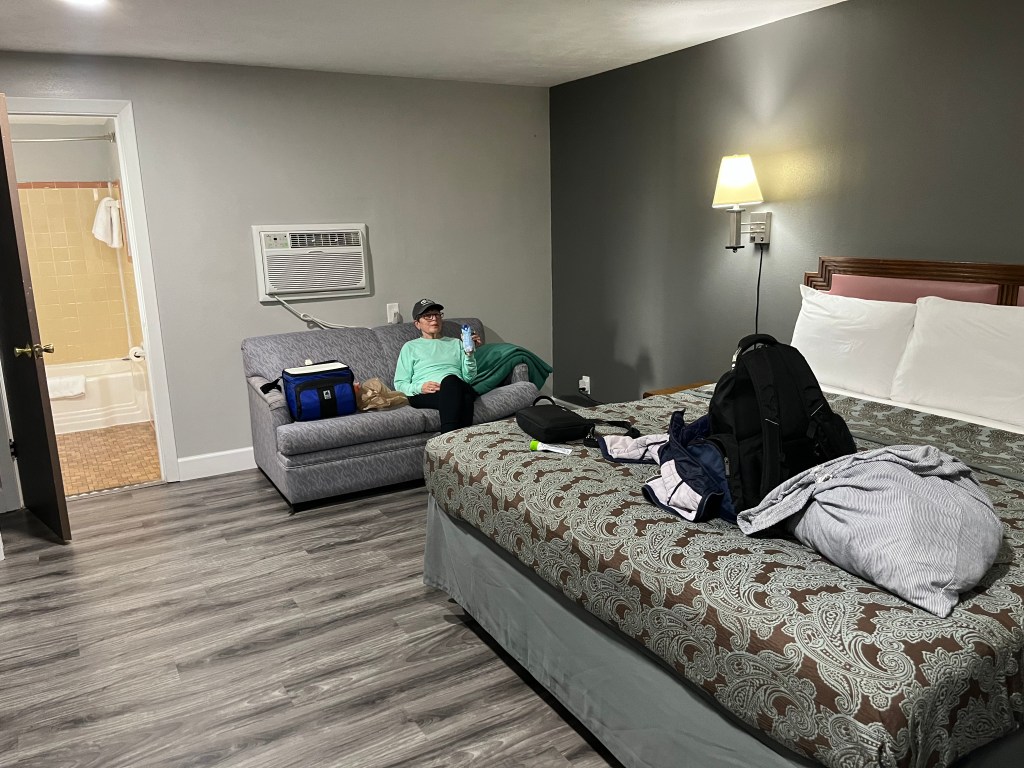 Rebecca and I have a few firm and fast rules when we road trip. The one that keeps our marriage intact is this: If one of us wants to stop … for any reason at all … we stop. Period. No questions. No whining. We have found some unbelievably cool places thanks to that one. Another one allows to sleep well at night: We will not accept a motel room until we have examined it, carefully checking the sheets, the mattress, the general cleanliness, the towels, and the condition of the bathroom. Non-negotiable. Period. Just won’t do it.