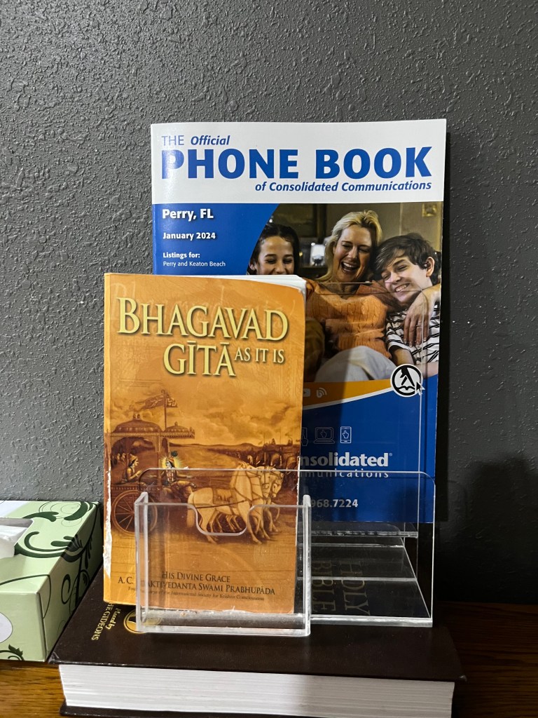 Thank you, Mr. Patel. It’s not every hotel room that provides a Gideon Bible AND a Bhagavad Gita!