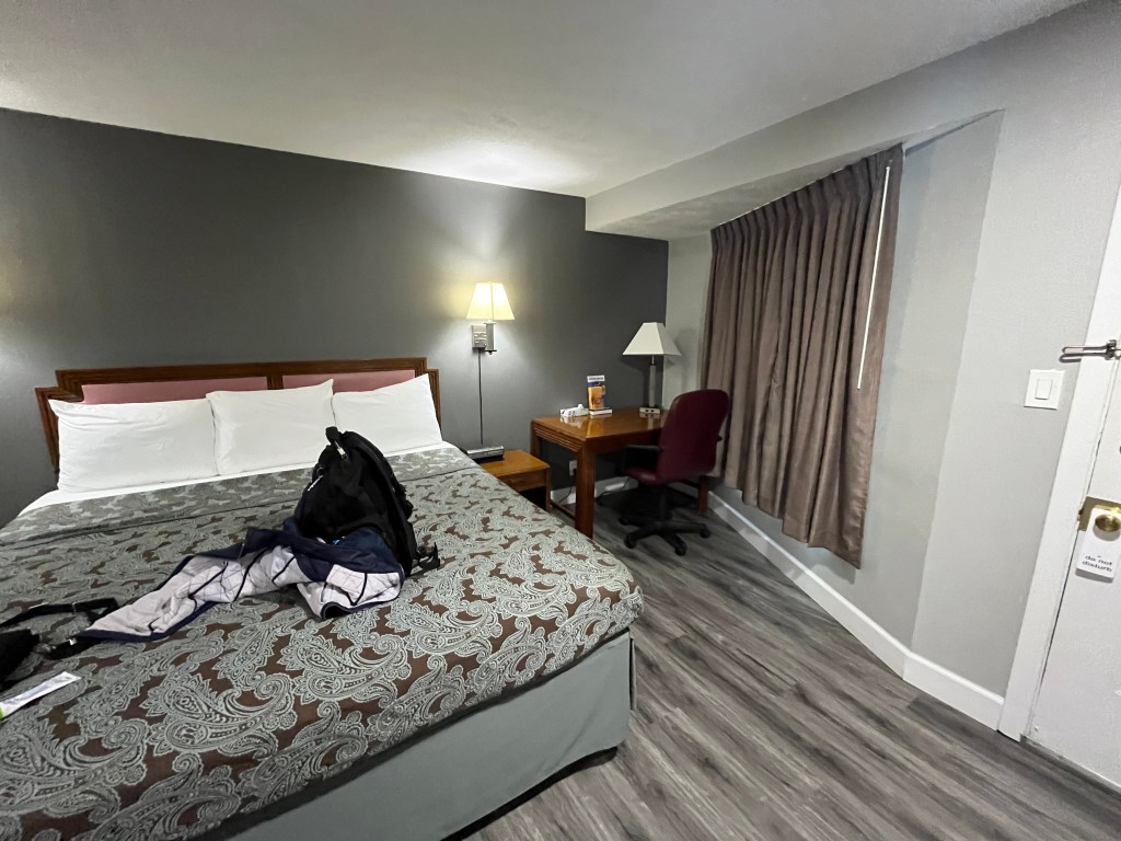 The room was spacious and comfy, with a good firm mattress, very decent pillows, a sitting table, a sofa, and a clean bathroom with towels that, while not plush, were fine at drying. It was far enough from the highway to be quiet. It had no smell. And it cost less than half of the Hampton Inn or Holiday Inn.