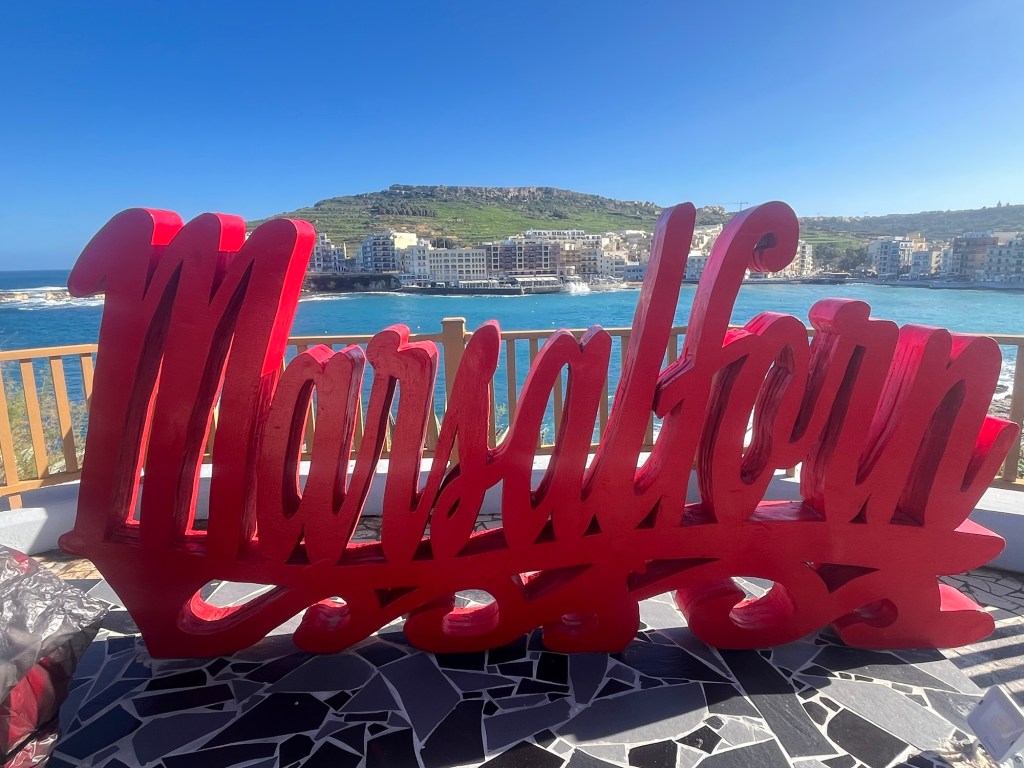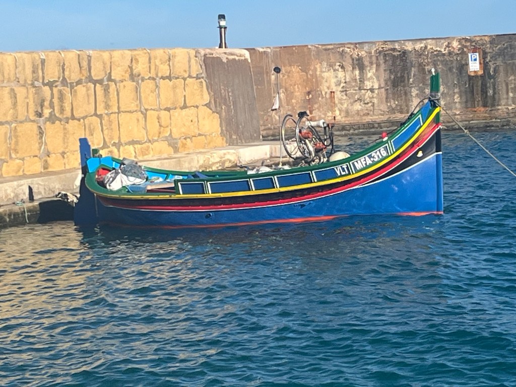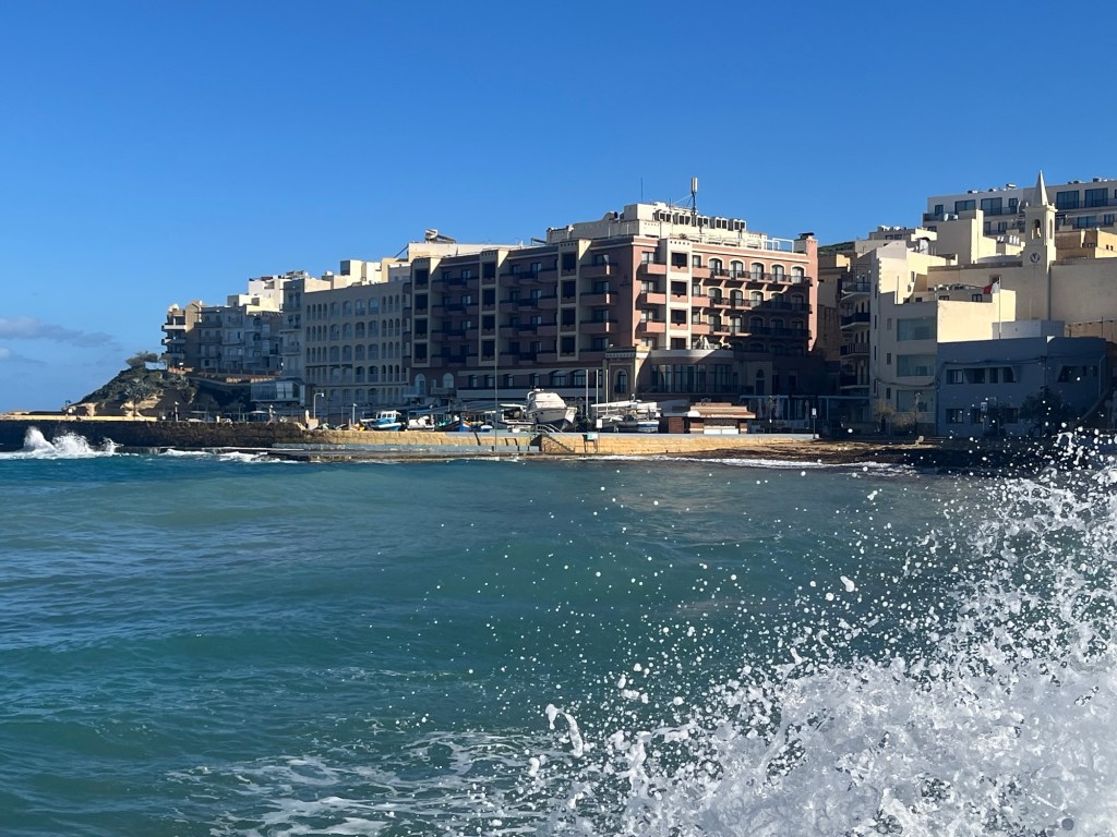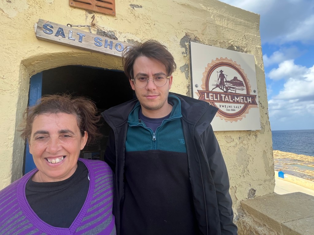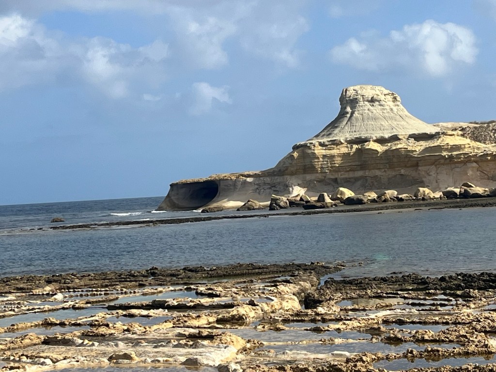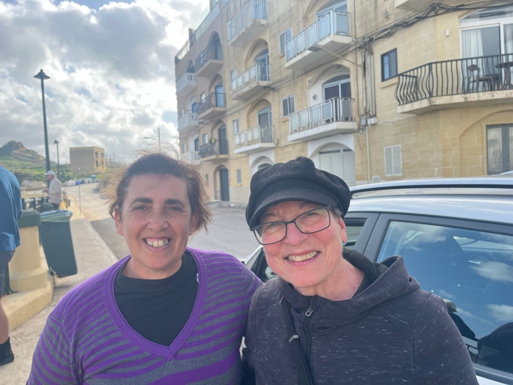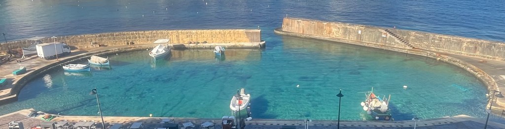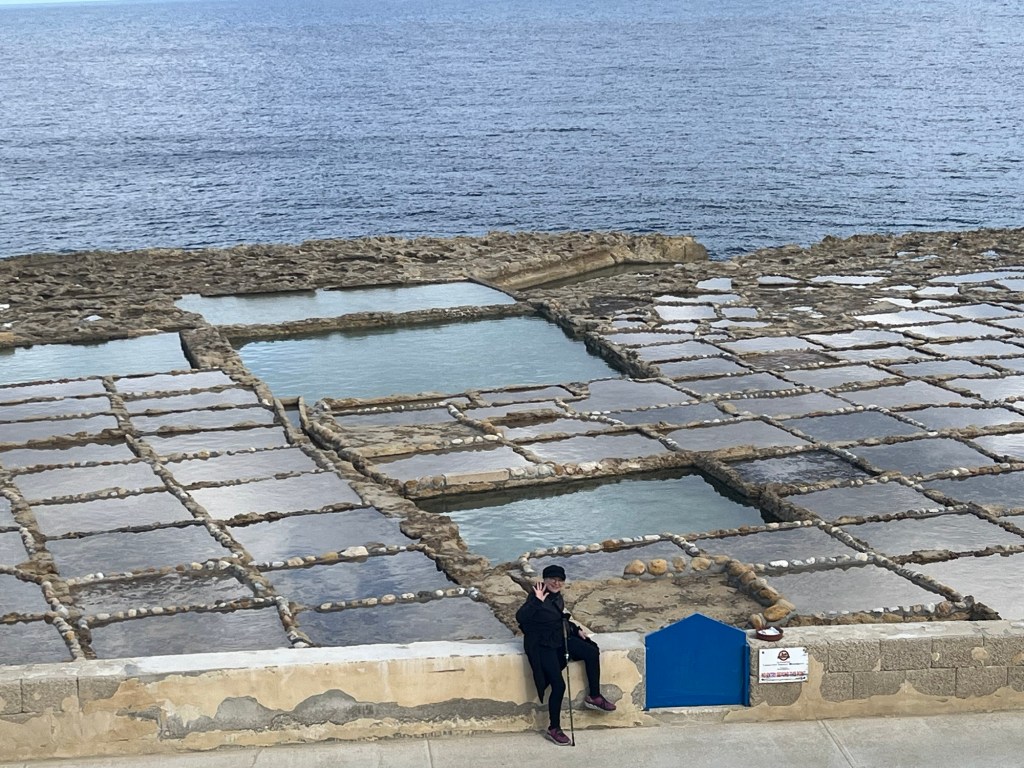 Two-plus weeks into the trip, we are batting 1000! Marsaxlokk in Malta and Marsalforn in Gozo have been idyllic. We have no idea how long we will be staying in Gozo, but I guess at some point, we will probably want to leave. Maybe. (Today, we rode the bus a few stops, walked a mile or so to visit a salt harvesting site by the sea, where we jawboned with the 6th-generation harvester, Justin, bought some Mediterranean sea salt, got a ride back to our bus stop from his mother, Josephine, stopped for an Indian lunch where we jawboned with a fun couple from Denver who were visiting with their 2-year-old son, returned to our hotel, and while I am writing at a table by the sea watching traditional fishing boats come and go, Rebecca is on a Zoom call with her girlfriends in Grand Isle. That’s it. All that’s left for the day is a cocktail to watch the sunset from our balcony, then figuring out where to eat supper. Will it be Italian, seafood, Indian, Thai, or traditional Maltese? (It turned out to be Chinese.) Adjusting to the pace seems to come pretty naturally to both of us … a very short learning curve.